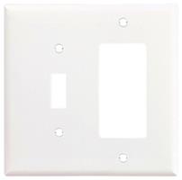 • Eaton PJ2W 2-gang white toggle wallplate, impact-resistant thermoplastic, for two standard toggle switches, provides durable coverage and alignment on multi-gang device boxes.