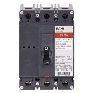 Eaton CVS3200X CVS series 3-pole 200 A 240 VAC molded-case breaker, high-interrupting rating.