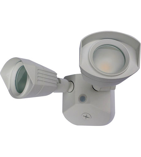 • Satco 65/211 white 20 Watt two-head LED security flood, adjustable heads with wall or eave mounting for residential driveways, walkways, and building entries.