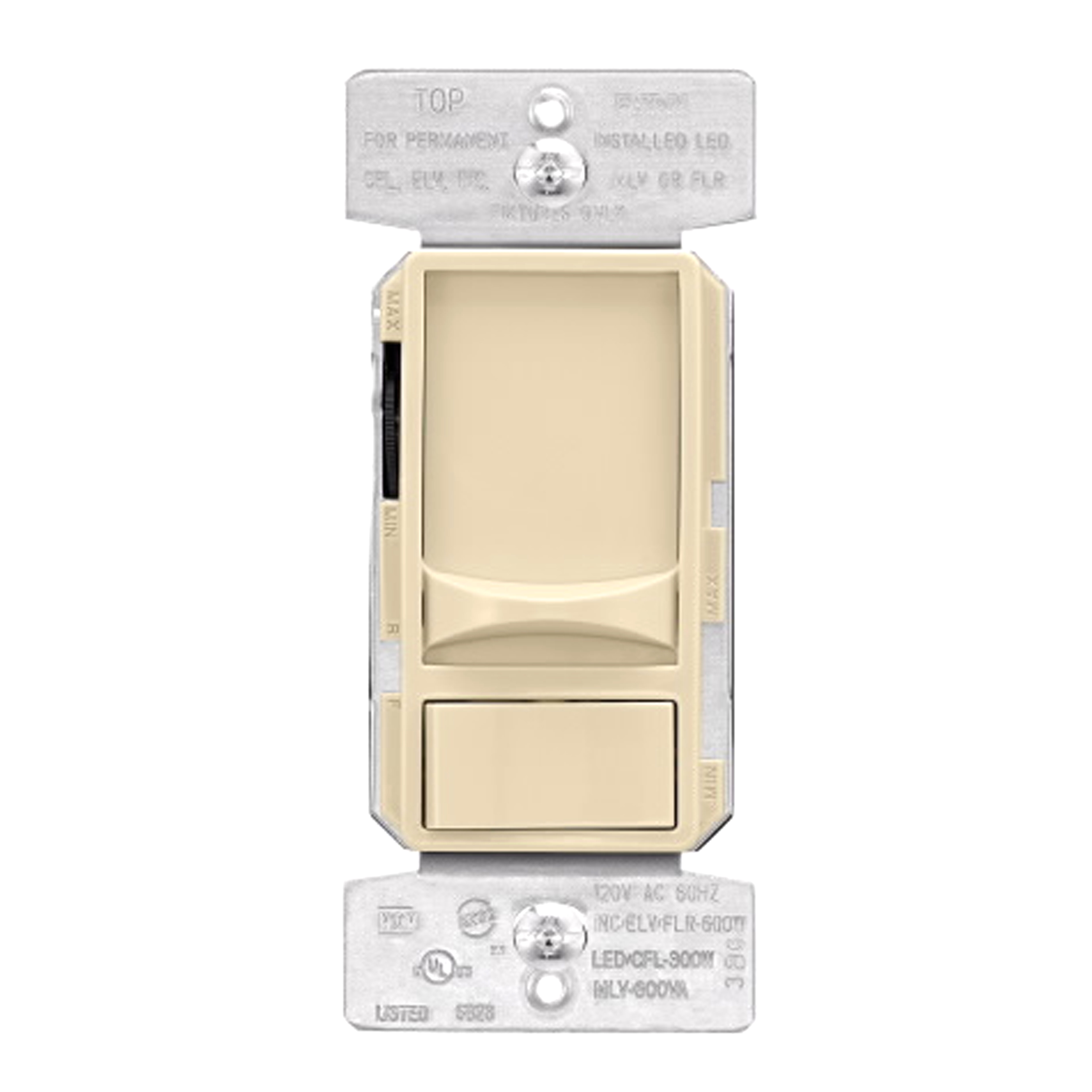 Universal slide dimmer, 1 pole/3-way preset, back and side wire