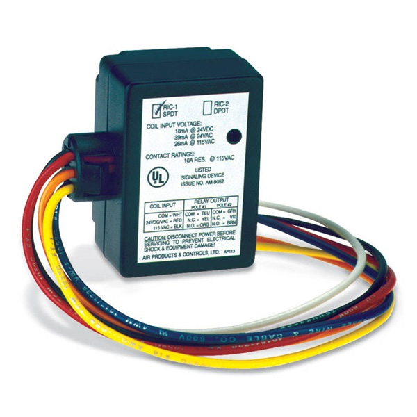 RIC Relay Modules are multi-voltage devices providing 10 Amp resistive dry form C contacts. The relay may be energized by one of three input voltages: 24VAC, 24VDC or 115VAC. The r