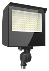 RAB X22-60 LED floodlight provides five selectable settings for output and/or color, delivering flexible illumination for building facades, signs, and general site lighting.